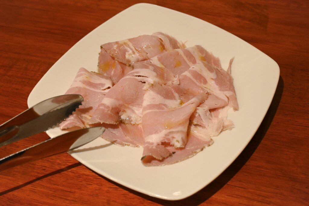 コインはおつまみとも交換可能。おすすめはロースハム。次の予定が入ってなければ間違いなくお土産でブロックを購入していた…ワインとの相性抜群。