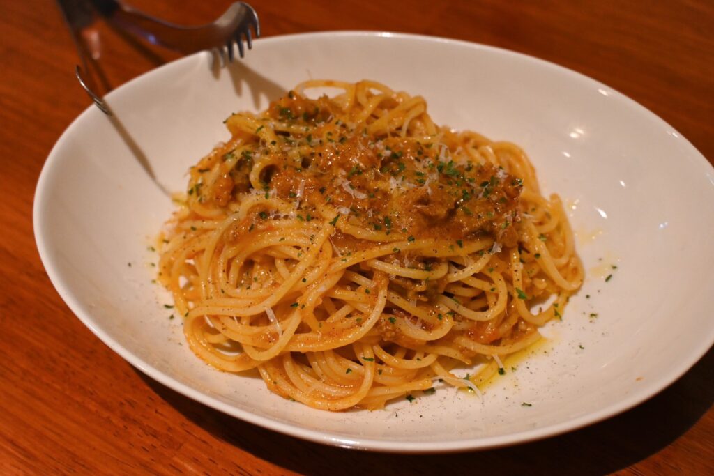 ワインやオードブルを立ち飲みで楽しめる老舗ワインショップ。初めて食べたミートソースパスタが衝撃の美味さ。これで800円は破格。ワインはシャルドネが一番好き。ブルーチーズ入りオムレツとの相性もばっちりでした。