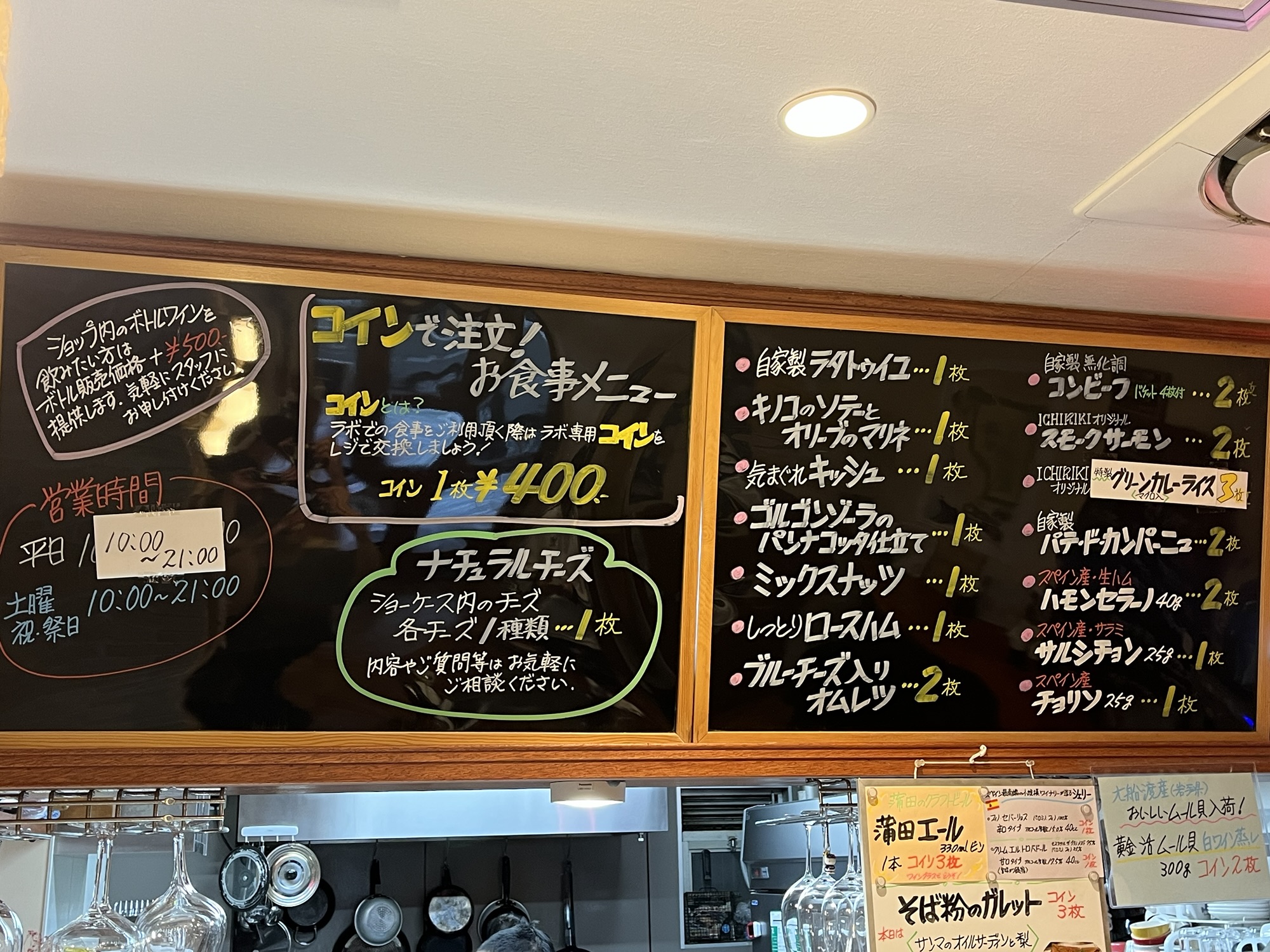 コインはおつまみとも交換可能。おすすめはロースハム。次の予定が入ってなければ間違いなくお土産でブロックを購入していた…ワインとの相性抜群。