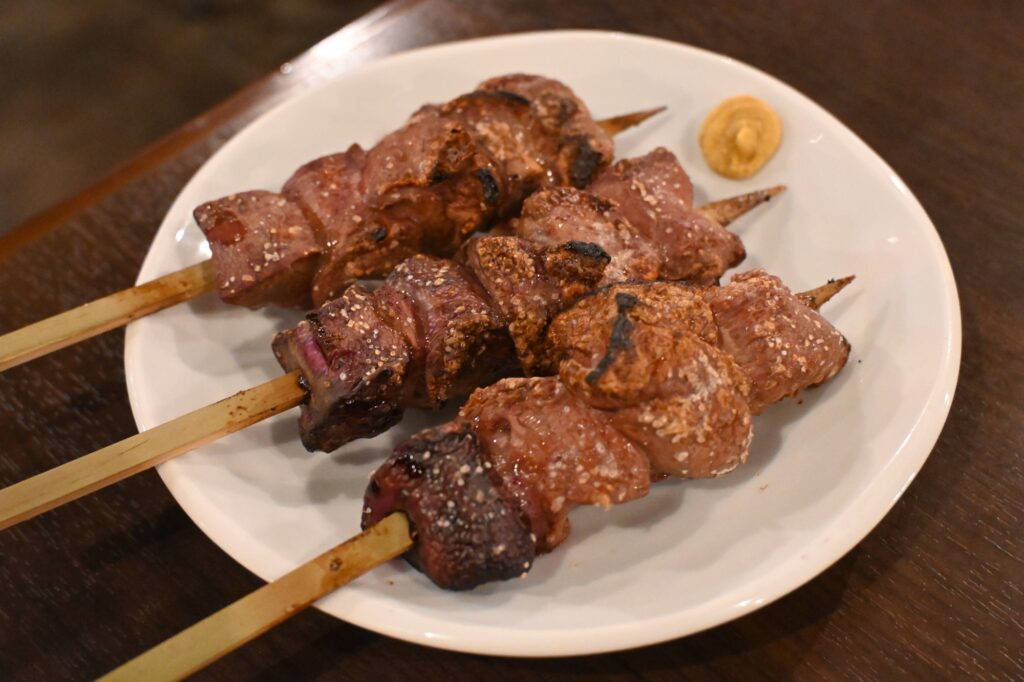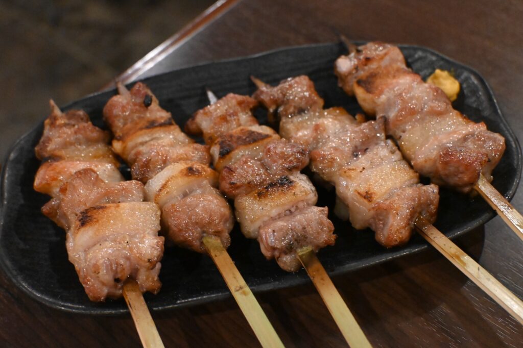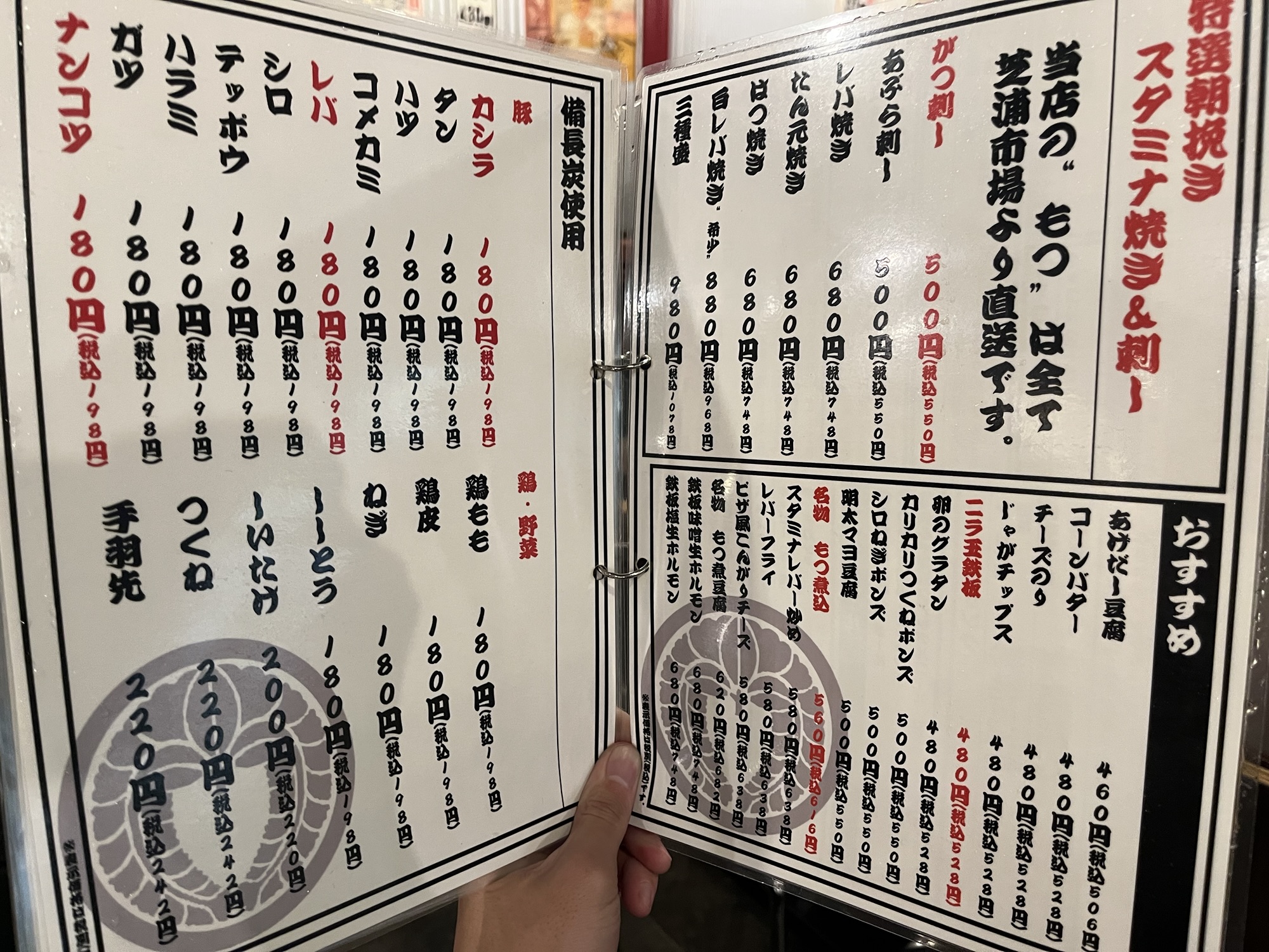 極上和牛もつ鍋は二人前で五人が満足できるほどの圧倒的ボリューム。醤油と塩から選べて推しは醤油。安定のもっちり明太ピザや熱々のニラ玉鉄板。かしらやレバーなど名物の串焼き。酒場メニューも豊富。地下の店内は広々で団体利用でもおすすめ。