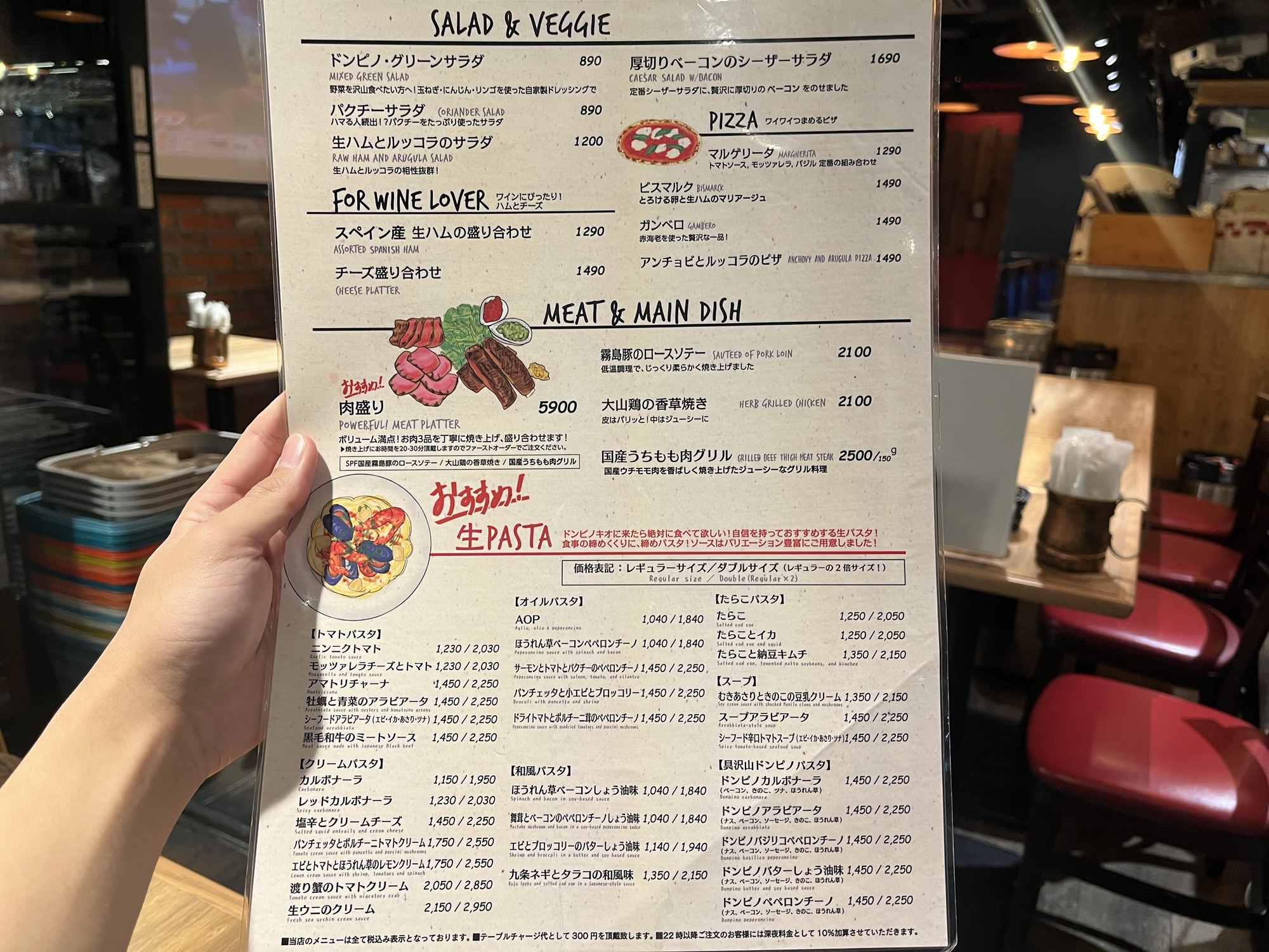 休日昼飲み。これからの温か気候にベストな開放感のある半テラス席。おすすめはやはりパスタ。具沢山のシーフードアラビアータは生パスタのもちもち感と適度な辛味がアクセントに。レギュラーとダブルの2サイズから選べます。