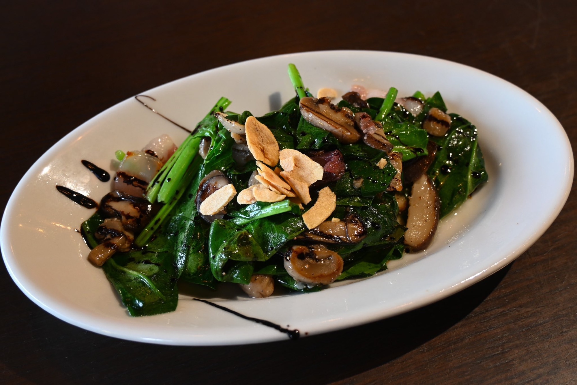 ここ大山鷄の香草焼きも美味しいなんて知らなかった。おすすめ。塩とマスタードでシンプルな食べ方なのにパリパリの皮とジューシーな旨味で癖になる。パンチェッタとキノコとほうれん草のソテーとも出会えて嬉しい発見多め。