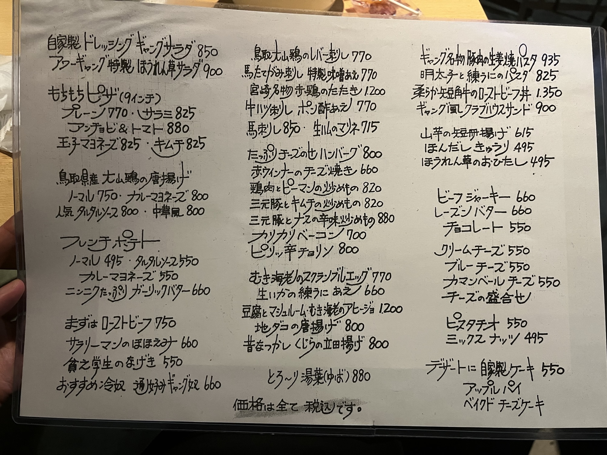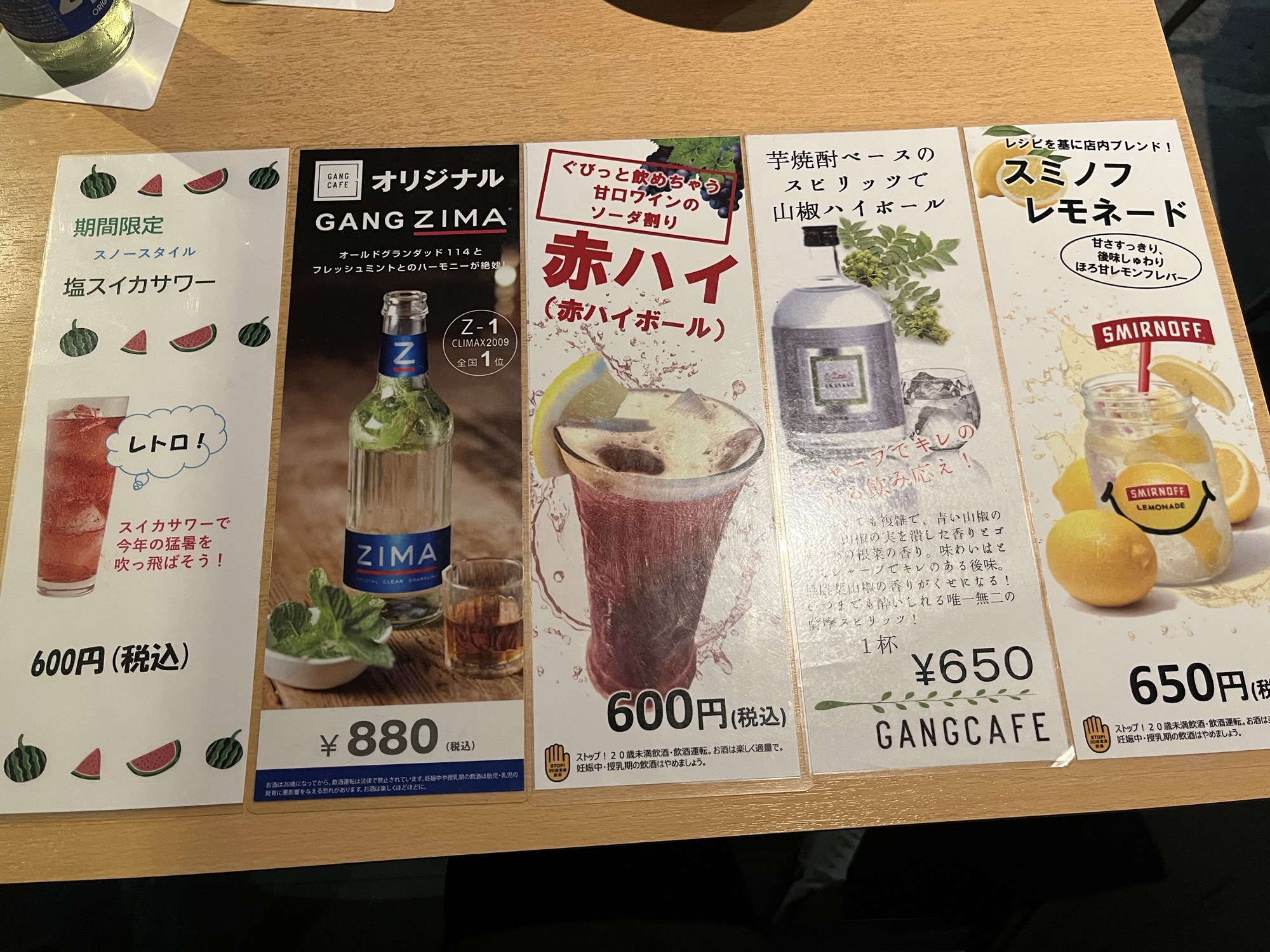 西口にあるカフェバー。 かつてOUR GANGというお店をやられていたマスターのお店。人当たりが良く居心地も最高。おすすめは後味すっきりな赤屋根山椒ソーダ割りとオリジナルのGANG ZIMA。馬たてがみ刺し自家製味噌タレあえは永遠にお酒が進むのでぜひ頼んでほしい。