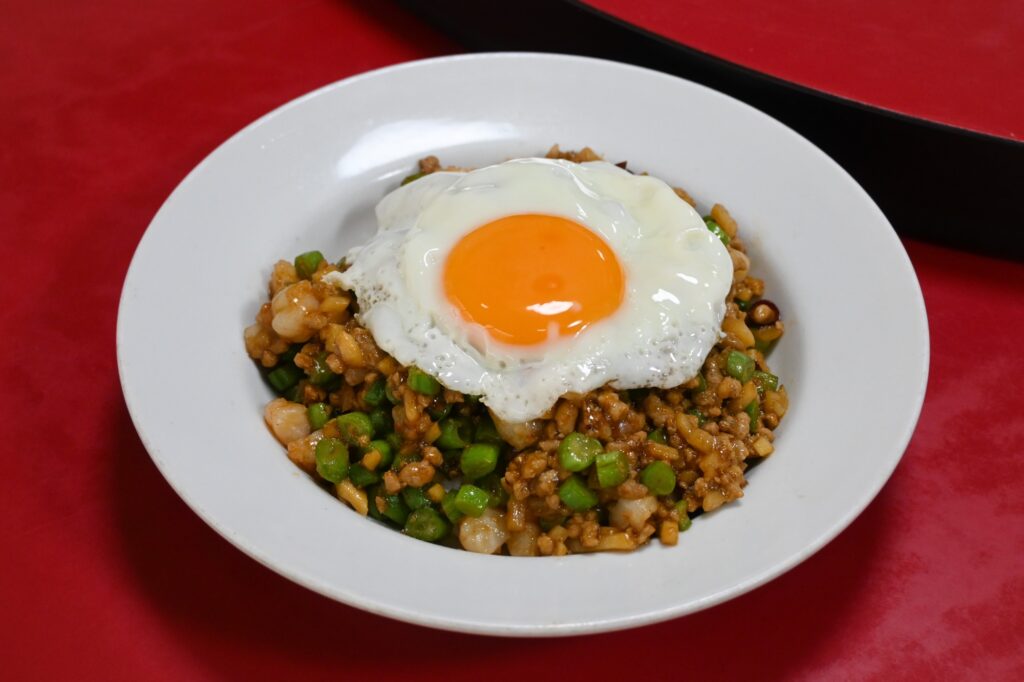 目玉焼きが乗った中華そぼろ丼。その美味しさに唸ること間違いなし!
