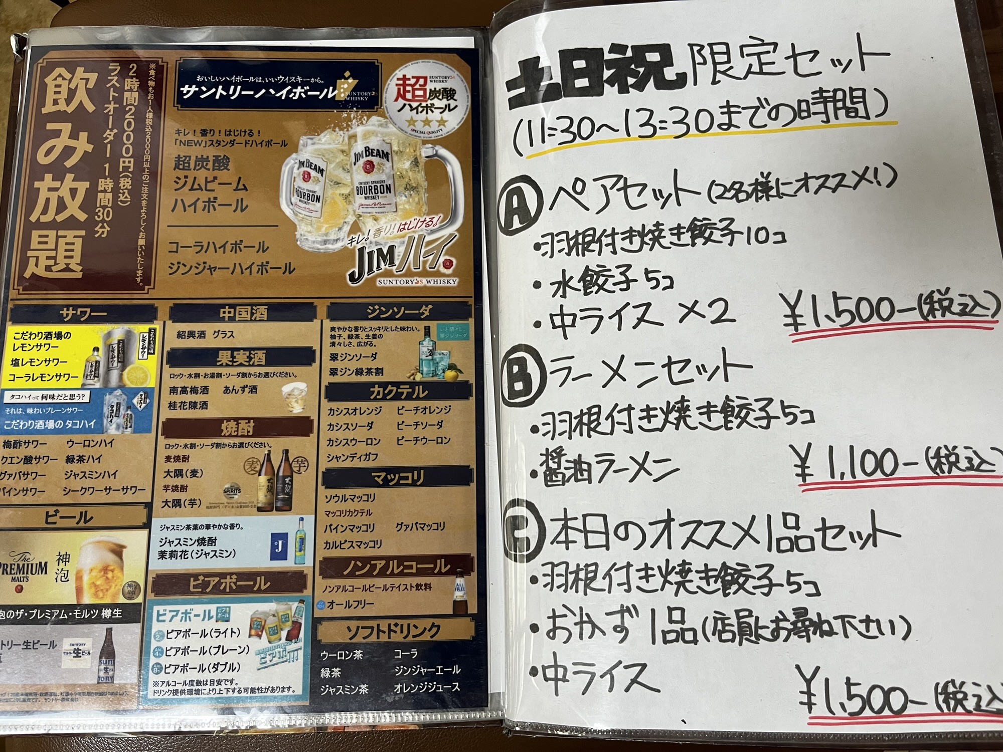 東口にある中華料理店。 何気なく注文した中華風そぼろ丼が今週のMVP。衝撃の美味しさで全員で唸りながら食べました。毎度どうしても頼んでしまう麻婆豆腐は豆腐も挽肉もたっぷり。食べ応え抜群。名物羽根付き焼き餃子と豚肉入り水餃子も当然いただいて大満足な夜。