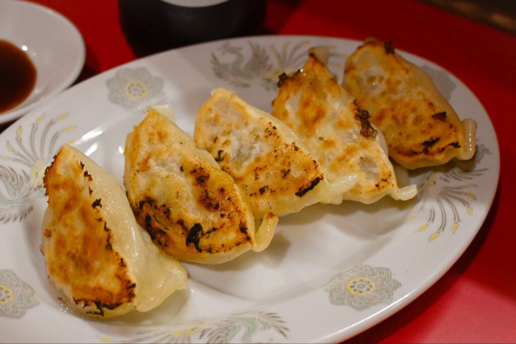 薄皮の餃子でお酒が進む。ビールとともにいただくと幸福度100倍!ちょうど良いサイズでお腹ももたれません。