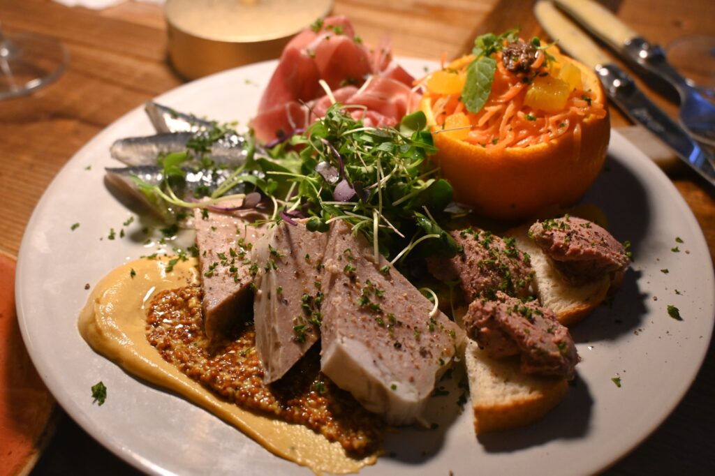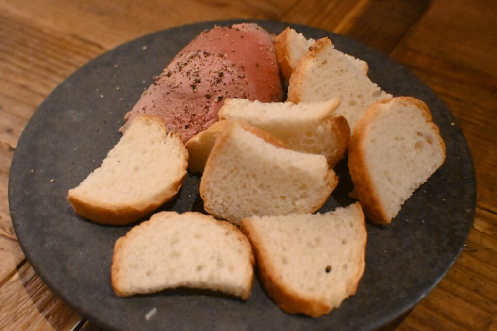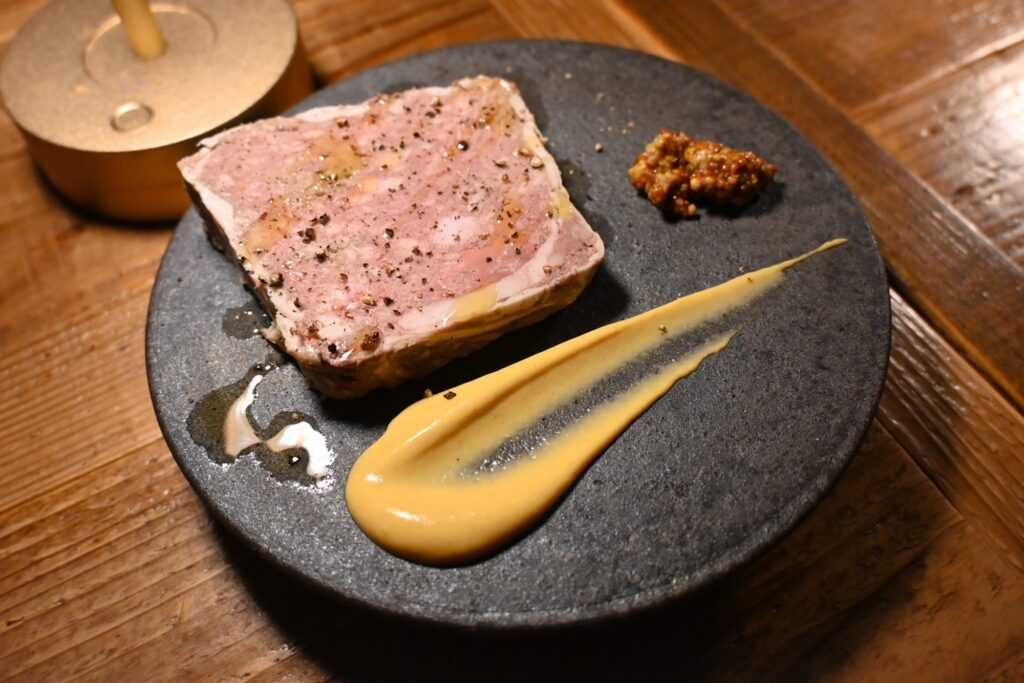 旨味たっぷり。粗挽きマスタードと特製ソースと一緒に食べれば最高のワインのお供。