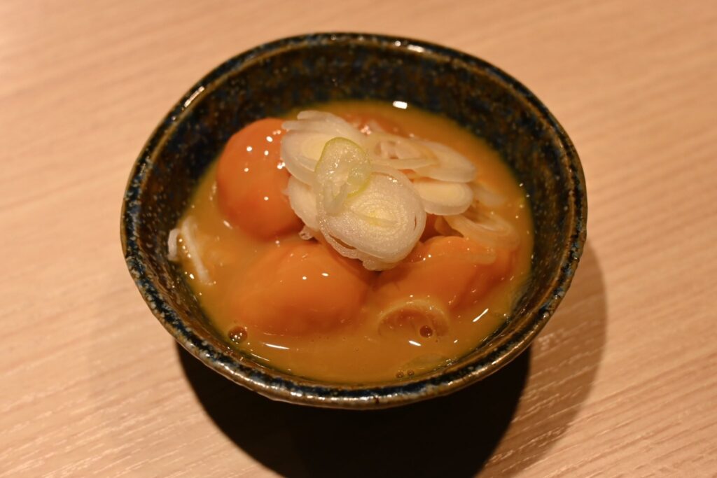 しっとり食感の鴨に極限まで味が染み込んだねぎが悶絶級の美味しさ。串を待つ間の前菜はこれで決まり。