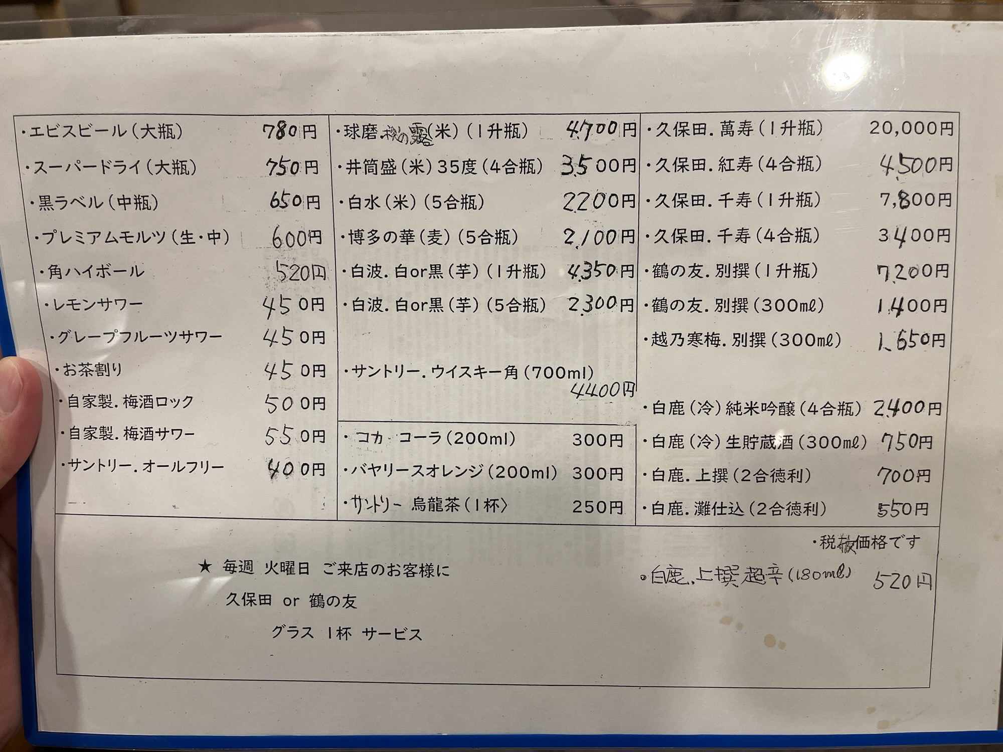 東口にある居酒屋さん。 50年以上続く老舗。いつからやってるかは忘れてしまったとのこと。笑 平日の早い時間でも活気が。店内の昔ながらの雰囲気も素敵。中々食べられない鯨の竜田揚げは生姜が効いていて美味。少しだけマヨをつけて味変も。お茶割りとの相性抜群。