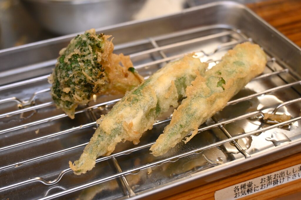 お肉やお魚の天ぷらも美味しいけ野菜天も捨てがたい…個人的にはブロッコリーがナンバー1。衣のサクサクした食感を一段と強く感じられる気がします。