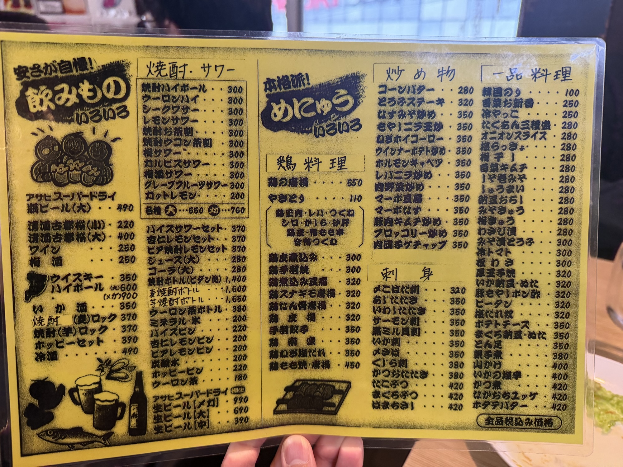言わずと知れた蒲田のランドマーク。圧倒的なコスパと貫禄のある雰囲気。お気に入りのオムライスは400円、大ぶりで超薄皮の餃子が350円、やきとり一本110円。さらにサービス品のネギトロ刺は時間帯もあり脅威の200円。2人で2杯ずつ飲んで会計は1人1,500円。神
