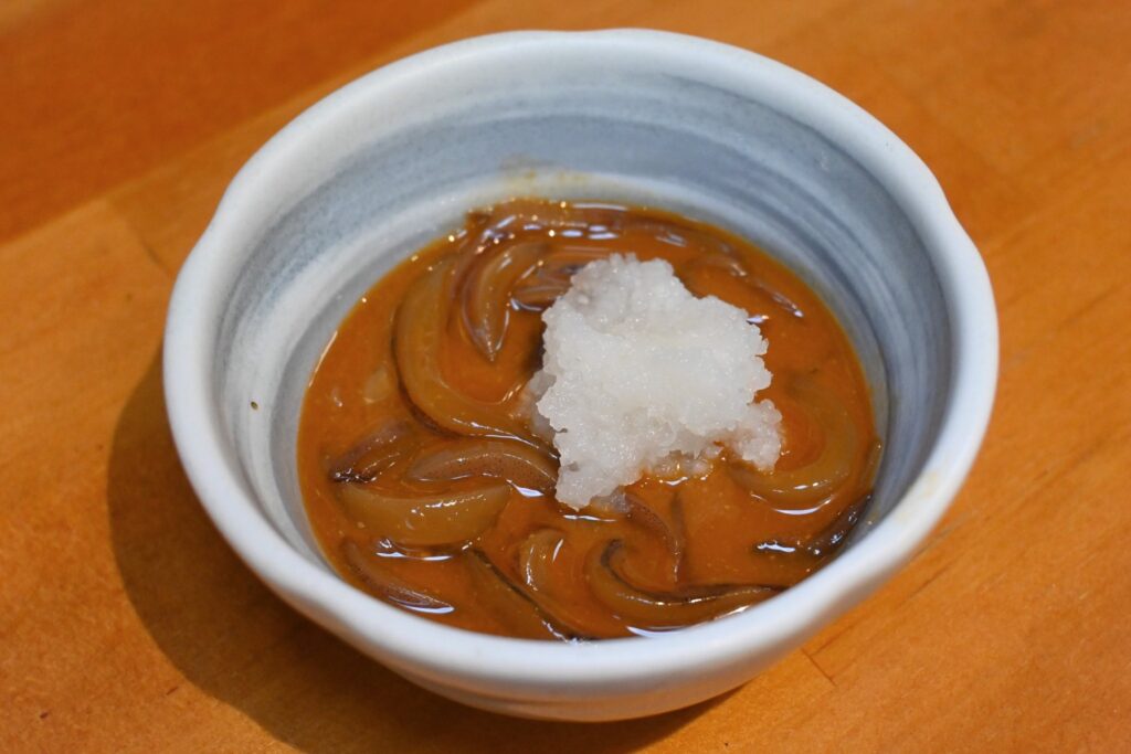 立ち飲みでこんな贅沢許されて良いのか。張りのある身に大根おろし醤油との相性が堪らない。それにしても安すぎ。