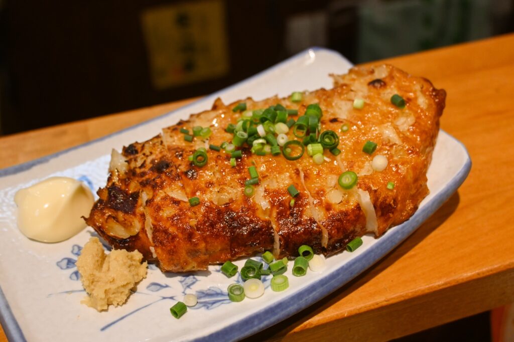 西口にある居酒屋さん。新鮮なお魚をリーズナブルに楽しめる立ち飲み店。ほっけ塩焼きが大優勝。ぷりっと張りのある身を大根おろし醤油で。こんなに満足感あって660円はバグ。同じくお初の青海苔入り出汁巻き玉子磯玉焼550円も超絶美味。ふわふわ。やはり神店。