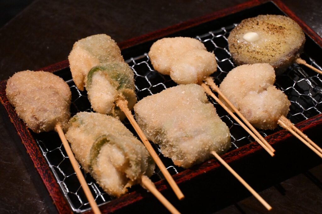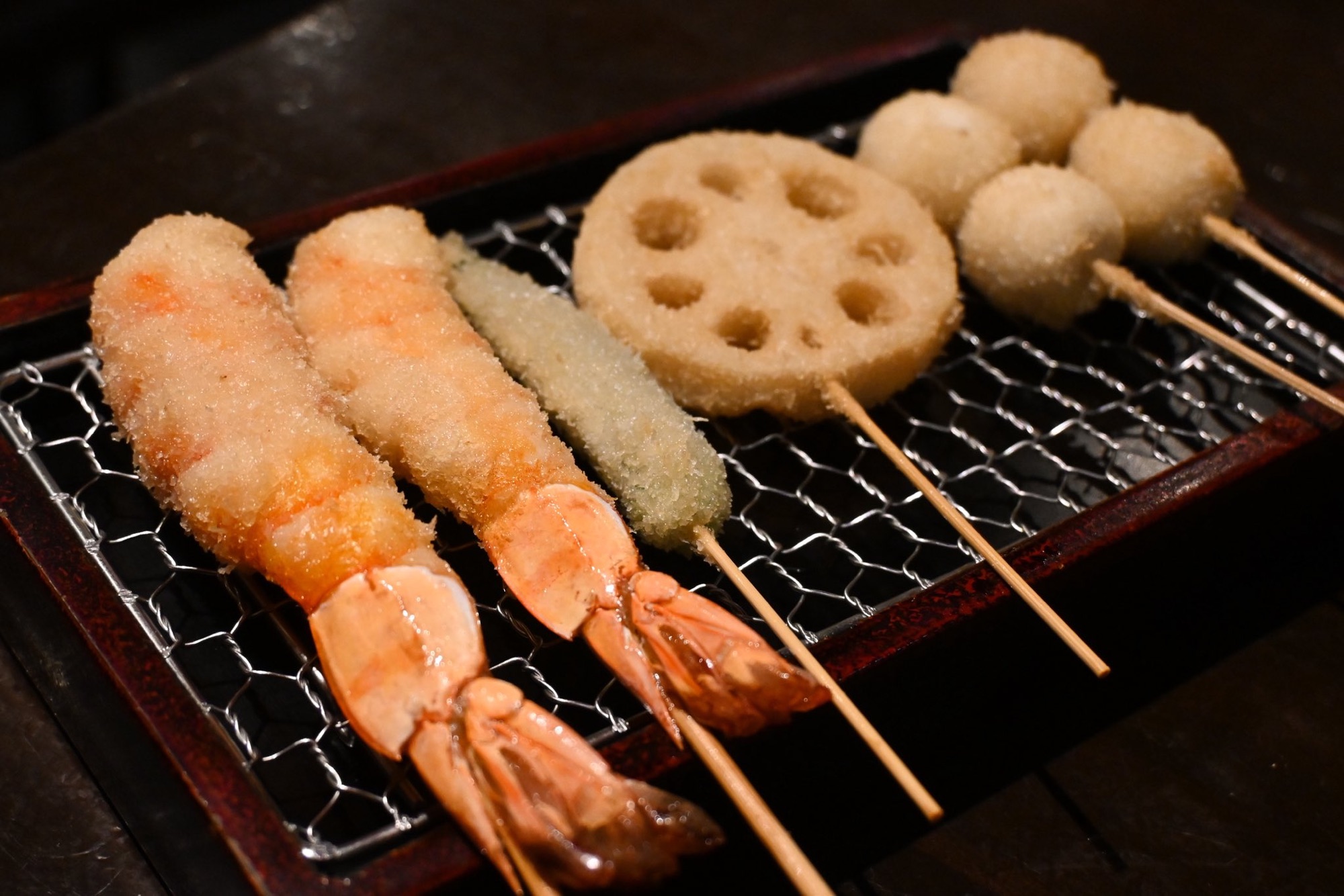 薄衣で驚くほど軽やかな串揚げ。素材の輪郭がそのまま立ち上がる!